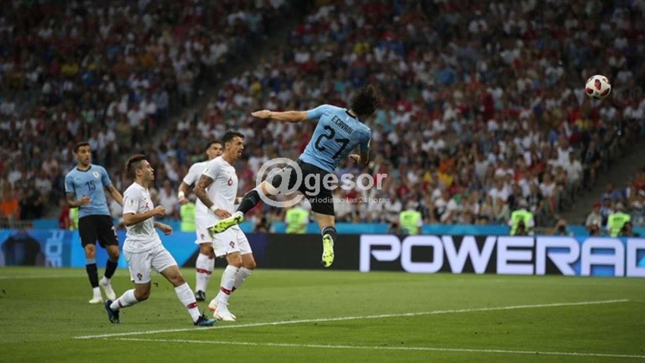 En un encuentro cuyo trámite se marcó por el tempranero golazo de Cavani en una jugada que inició él, con un pelotazo cambiando de derecha a izquierda todo el ancho de la cancha para Luis Suárez y éste tras el control y encarar a un rival pone el centro pase para Cavani que mitad cara y mitad hombro la metió junto al caño izquierdo de Rui Patricio para poner el 1 a 0, iban solamente 7 minutos.