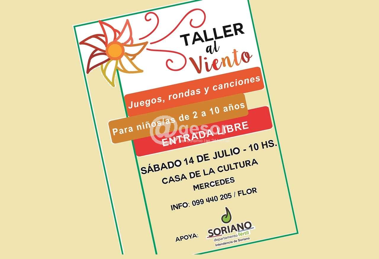 La Dirección de Cultura de la Intendencia de Soriano promueve una actividad para niños de de 2 a 10 años denominada “Taller al viento”. La misma es de carácter gratuito y se realizará en Casa de la Cultura de Mercedes, el sábado 14 de julio, a las 10 horas.
