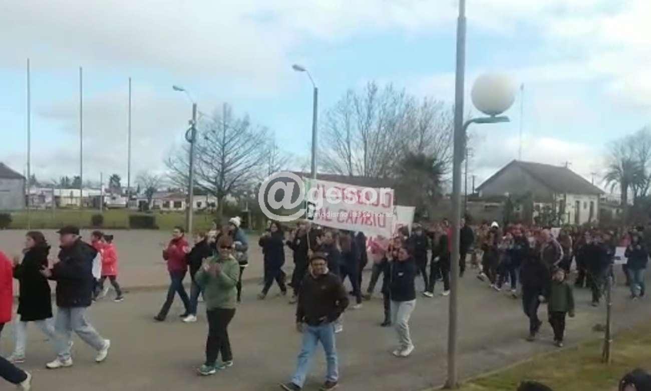 Vecinos de Cardona realizaron una marcha por el bulevar en apoyo a los reclamos de los trabajadores del Sanatorio CAMS de esa localidad. Este sábado luego del acto realizado en la jornada del viernes donde se expuso la preocupación por la reestructura de servicios que actualmente cumple el Sanatorio CAMS de Cardona, y que implicaría la pérdida de puestos de trabajo, este sábado se realizó esa marcha tras un gran cartel en el que se leía “80% de los puestos laborales en riesgo”. Otros carteles expresaban “Si al trabajo, no al cambio”, “No a la reestructura de CAMS Cardona”.