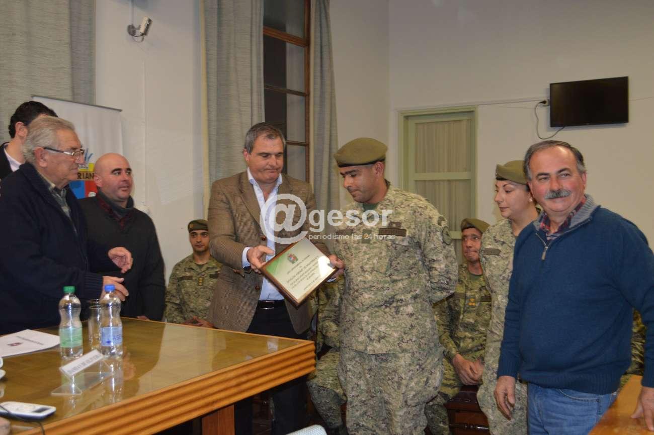 Por último los ediles proponentes Andrés Juri, Emanuel Borges, Marcos Morossini, Richard Izaguirre, Juan Rey hicieron entrega de una placa de reconocimiento a los efectivos del Batallón Asencio, inscrita con la siguiente leyenda: “Junta departamental de Soriano, al Batallón Asencio de Infantería Nº 5, por su gran aporte solidario y profesional, volcado en ayuda de las víctimas del tornado de Dolores”.