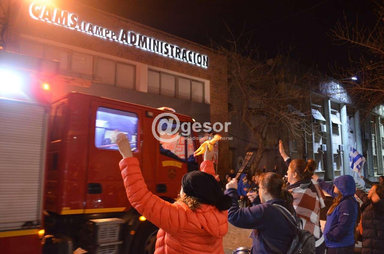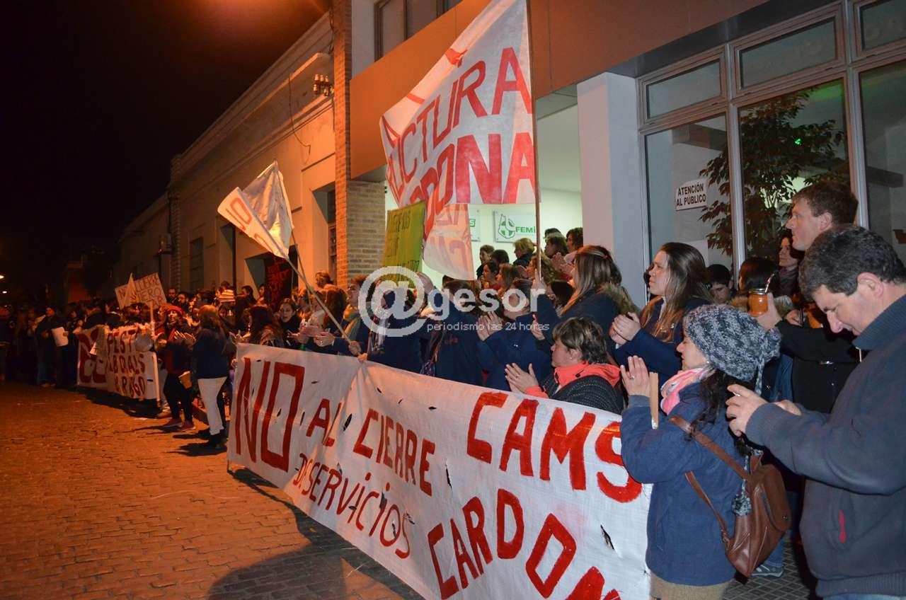 “Tajantemente, en Cardona no va a haber cierre de servicios” así lo afirmó el dirigente de la Federación Uruguaya de la Salud (FUS) Elolo Mendoza al salir de la reunión con directivos de CAMS. En el acceso al Policlínico de CAMS de Mercedes y luego de más de dos horas de reunión, dirigentes de la FUS y del Sindicato local improvisaron un acto frente a afiliados y usuarios de CAMS que estuvieron haciendo el aguante. Como estaba previsto sobre las 19,30 horas se inició la reunión entre la delegación sindical y la directiva de la mutualista local, y desde esa hora más de dos doscientas personas se agruparon frente al Policlínico. Redoblante, bombo, tapas de ollas, campanillas y cornetas sirvieron para exteriorizar la protesta con carteles que expresaban “No a la reestructura de CAMS Cardona”, o “Queremos seguir trabajando”. Mayoritariamente se trataba de funcionarios y usuarios de Cardona y Dolores, y paulatinamente comenzaron a sumarse algunos ediles de la Junta Departamental. Llamó la atención que ningún edil del Frente Amplio se hizo presente durante la manifestación, y tampoco estuvieron presentes dirigentes del PIT CNT local o de otros sindicatos.