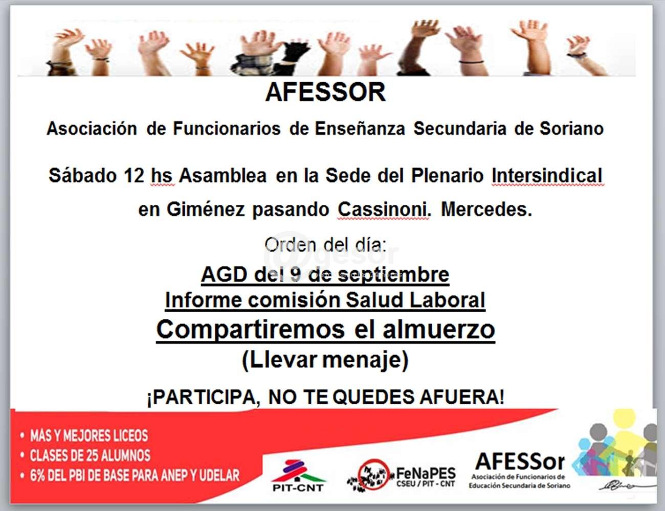 Sábado 12 hs Asamblea en la Sede del Plenario Intersindical en Giménez pasando Cassinoni. Mercedes.