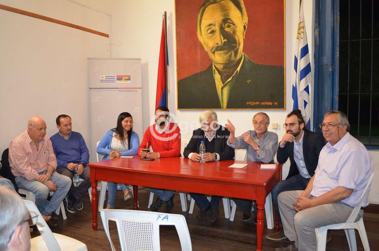 La Mesa Política del Frente Amplio recibió al Ministro del Interior. Tal como estaba previsto el Ministro Eduardo Bonomi visitó la sede del Frente Amplio al caer la tarde de este viernes, luego de desarrollar una serie de actividades en Mercedes y Río Negro. Bonomi, acompañado Director General de Secretaría Ing. Federico Laca participaron de esta reunión con dirigentes y militantes frenteamplistas donde se trataron temas relativos a la seguridad del departamento.