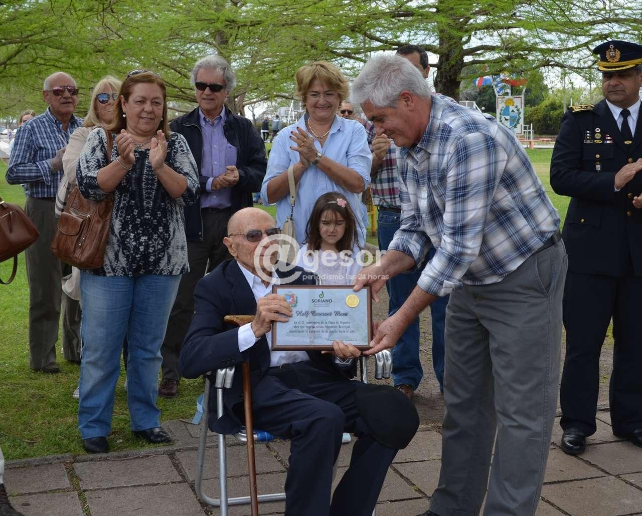 En la plaza de Deportes, en la rambla mercedaria, la Intendencia de Soriano homenajeó al ex Intendente Holf Caresani, a 25 años de la inauguración de este espacio público que significó la ampliación de la rambla mercedaria.