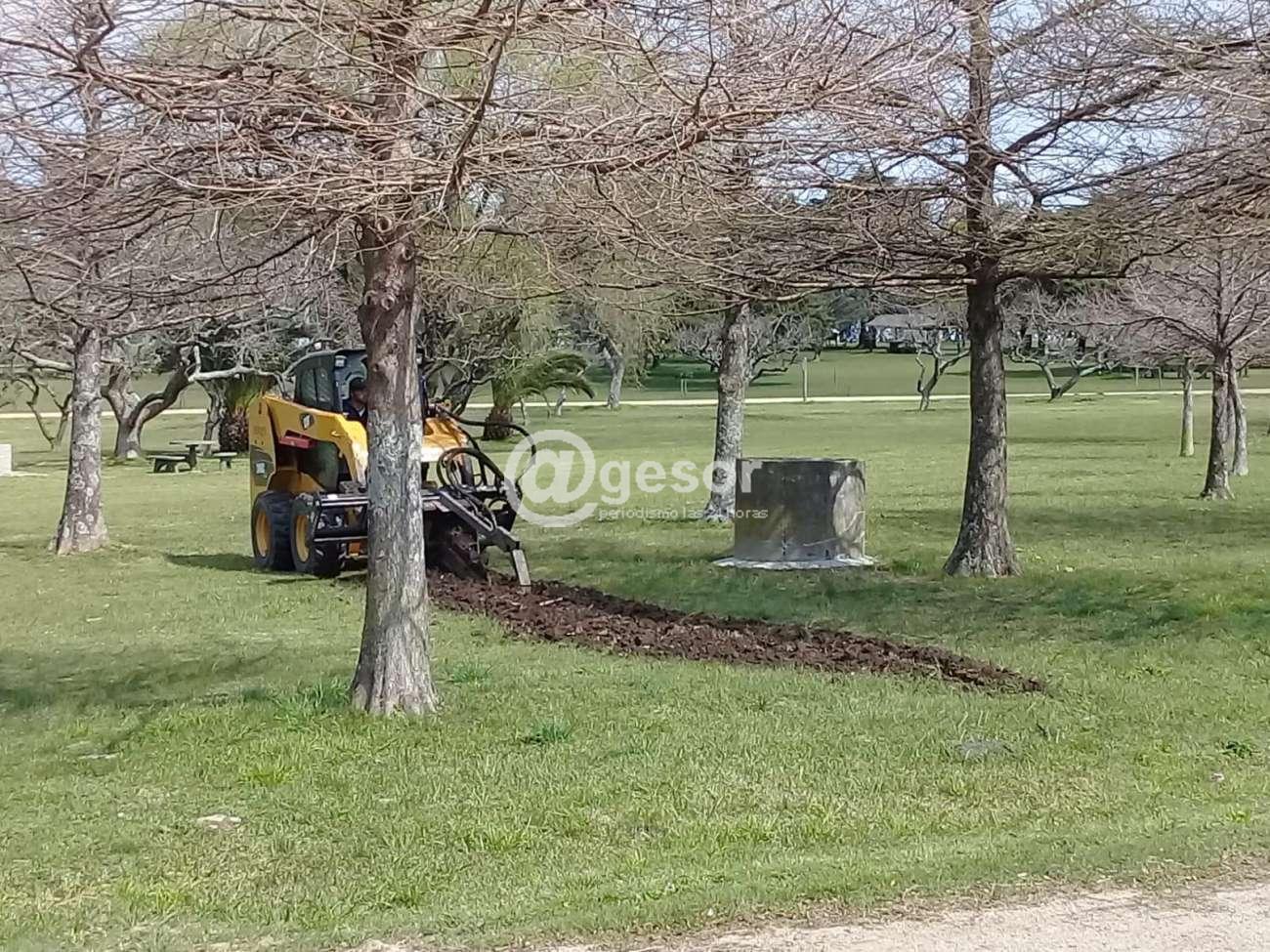 En ese sentido, se viene trabajando en zanjeado para el tendido de cañerías de agua del sistema de riego en el sector del parque donde está el Rosedal.