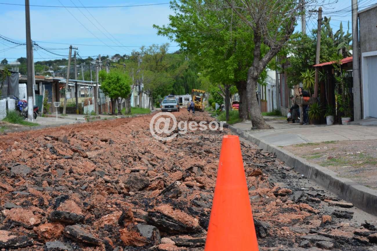 Actualmente se está trabajando en calle Braceras, realizando el retiro de la capa bituminosa deteriorada, así como también la recarga de la sub base y la base con material granular (granza).