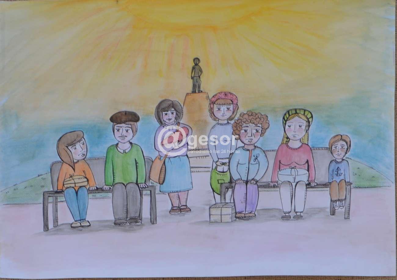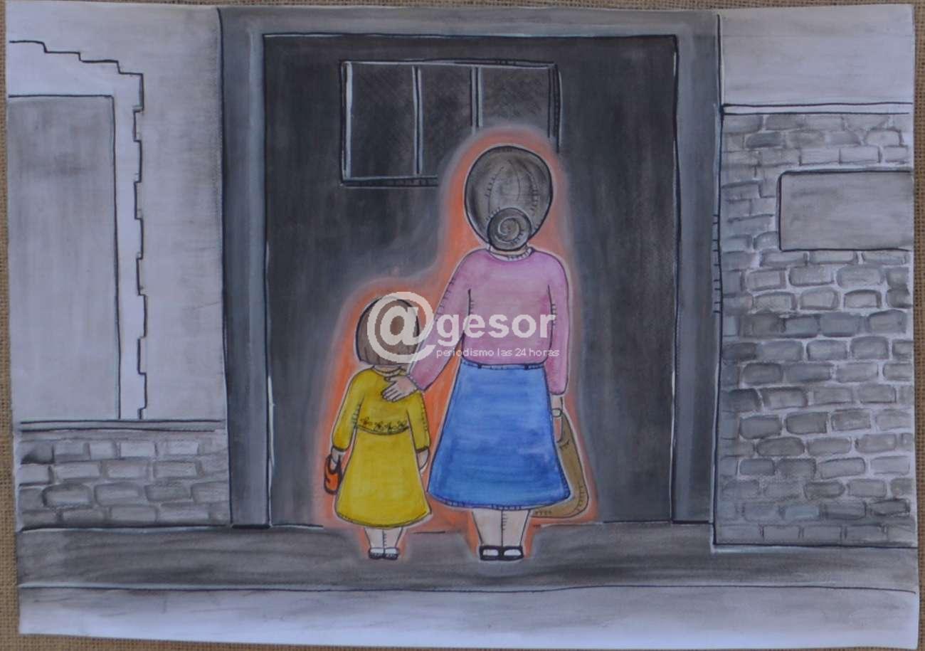 En otro, los dibujos de Natalia muestran figuras que se relacionan con la leyenda: "Cuando hablan de las visitas, en general, hablan de "paquetes". Las visitas llevaban consigo paquetes, llenos de cosas para sus familiares, pero sobre todo, llenos de amor y de esperanza. Los paquetes eran revisados a la entrada y su contenido era objeto de censura. La ventaja del amor y la esperanza es que no hay control, ni humano, ni electrónico, que sea capaz de detectarles".