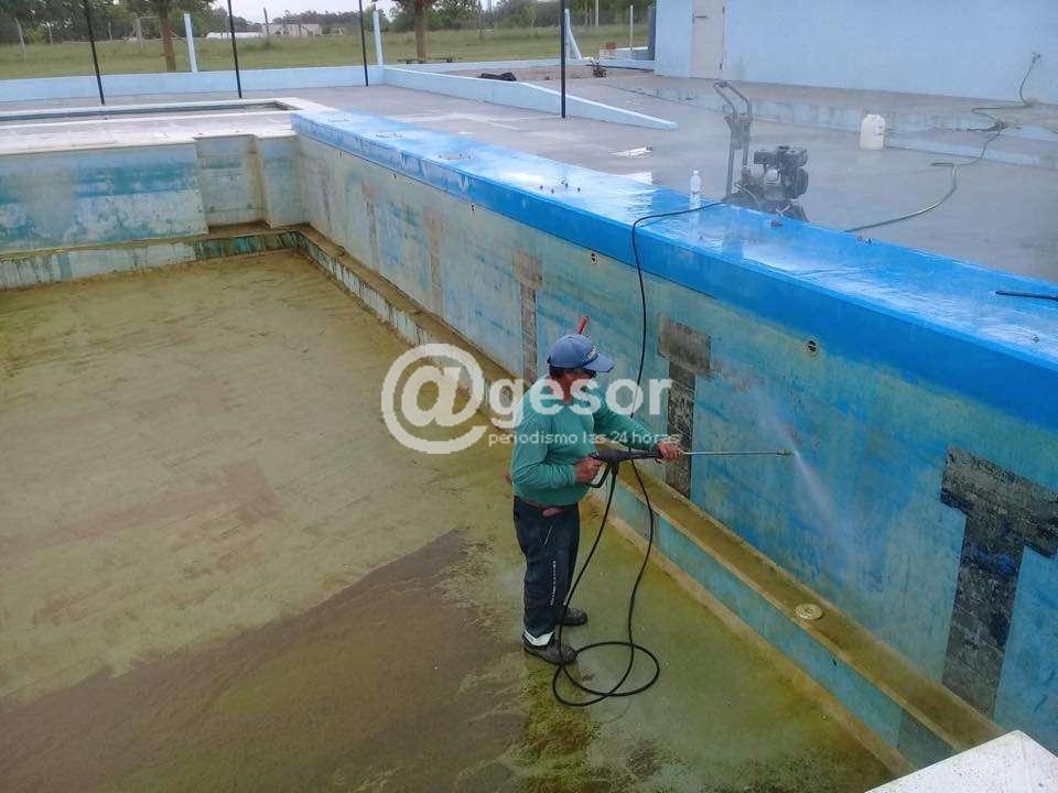 Allí, personal municipal ha procedido al desagote de los 450.000 litros de agua de la piscina, luego se realizó la limpieza mediante hidrolavado, dejando todo listo para la aplicación de la pintura correspondiente.