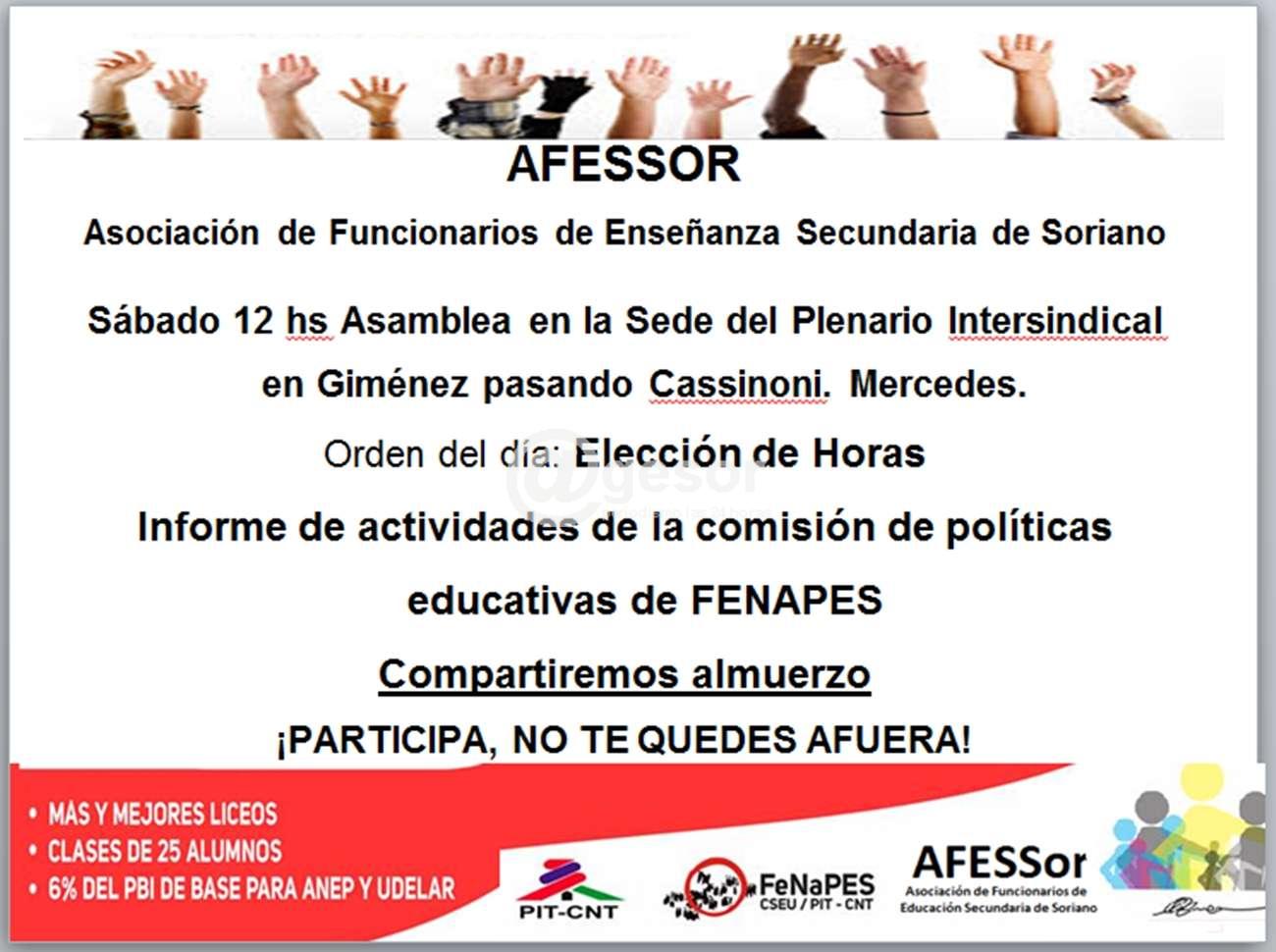 Sábado 12 hs Asamblea en la Sede del Plenario Intersindical en Giménez pasando Cassinoni. Mercedes.