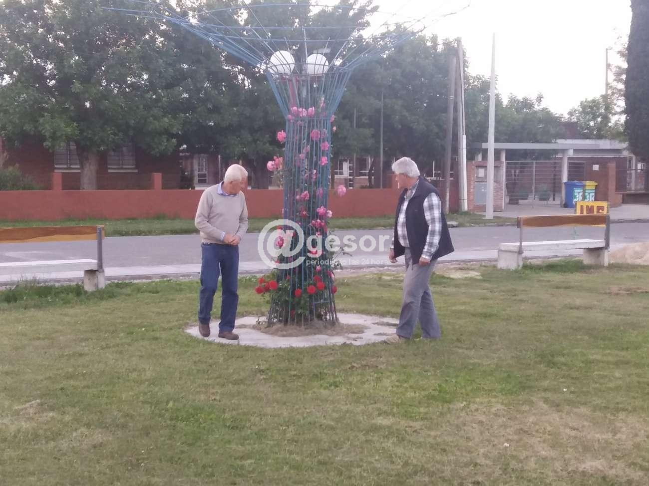 Acompañado por el alcalde local, Juan Vinçón, observó el pavimento construido con baldosas en las aceras, así como los bancos y las 24 luminarias triples que se instalaron y los rosales plantados en las estructuras de metal que decoran la plaza.