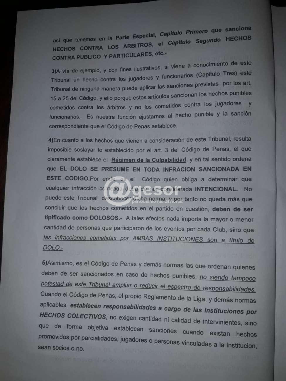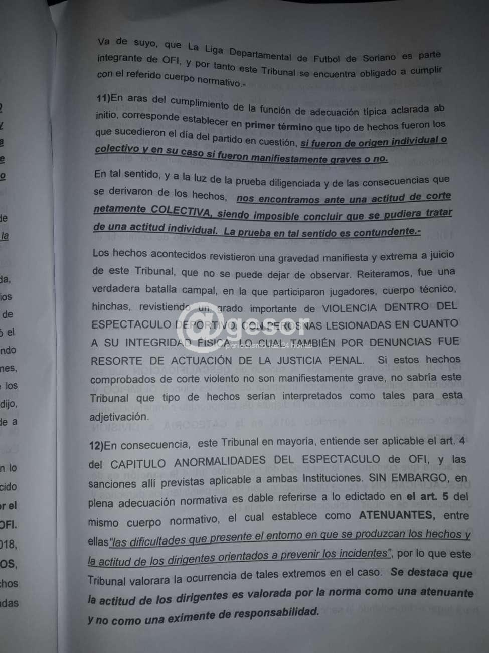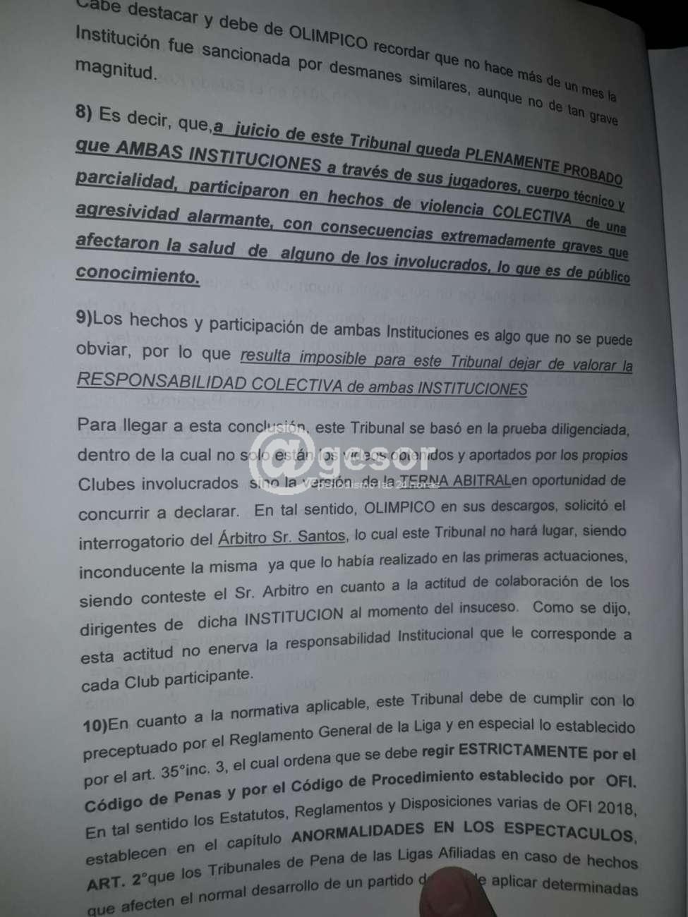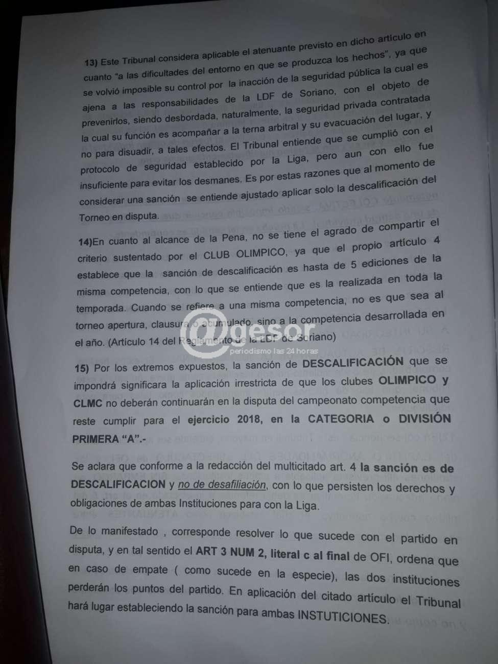 Ofrecemos el texto completo a través de fotografías, del informe firmado por tres integrantes de los cuatro del Tribunal de Penas de la Liga de Fútbol de Mercedes, que fallan sancionando con la descalificación a los clubes Olímpico y Con Los Mismos Colores.