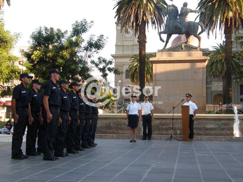 En Plaza Independencia de Mercedes se realizó la ceremonia donde fueron impuestos en el cargo 13 nuevos policías que egresaron de un nuevo curso en la Escuela Departamental de Policía.