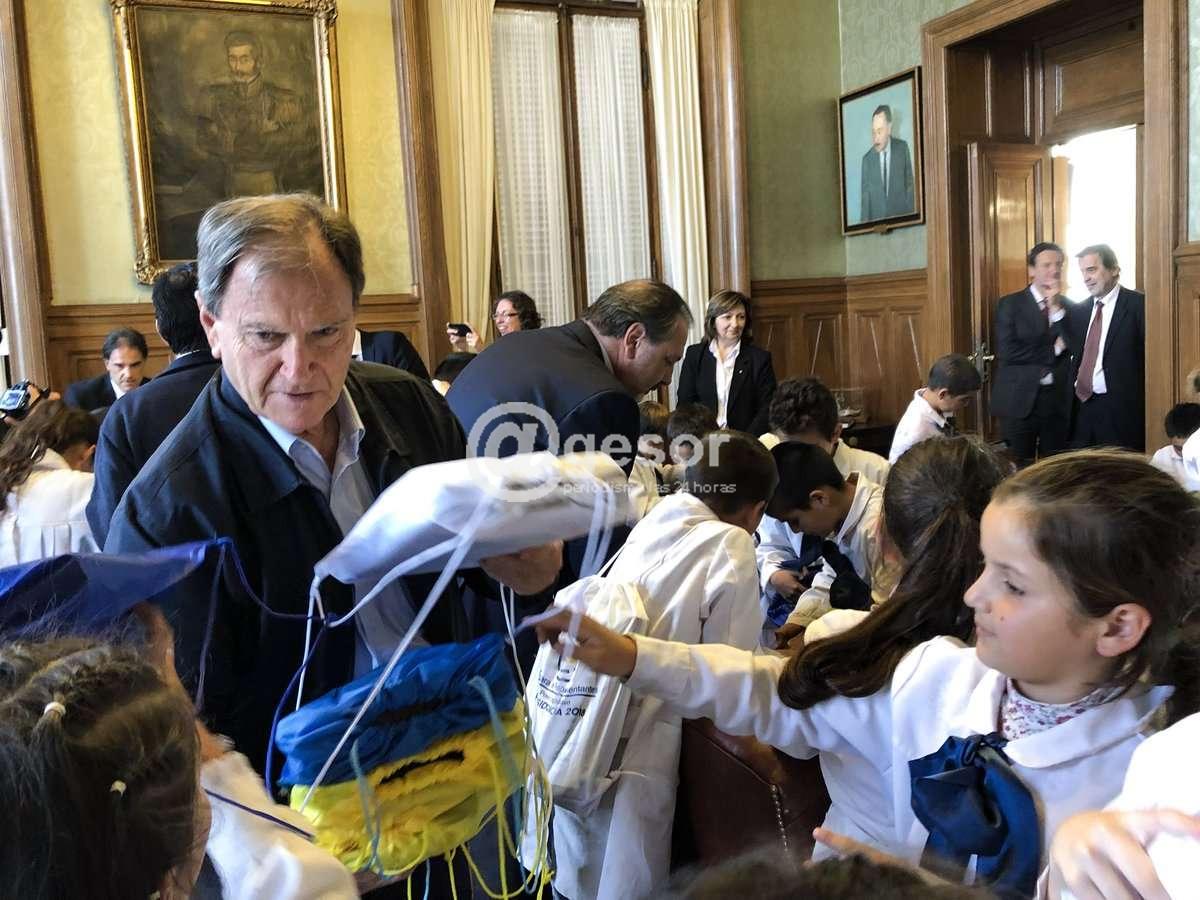 En ese lugar fueron recibidos por el Presidente de la Cámara de Diputados, Jorge Gandini, y los legisladores por Soriano Enzo Malán y Gonzalo Novales.