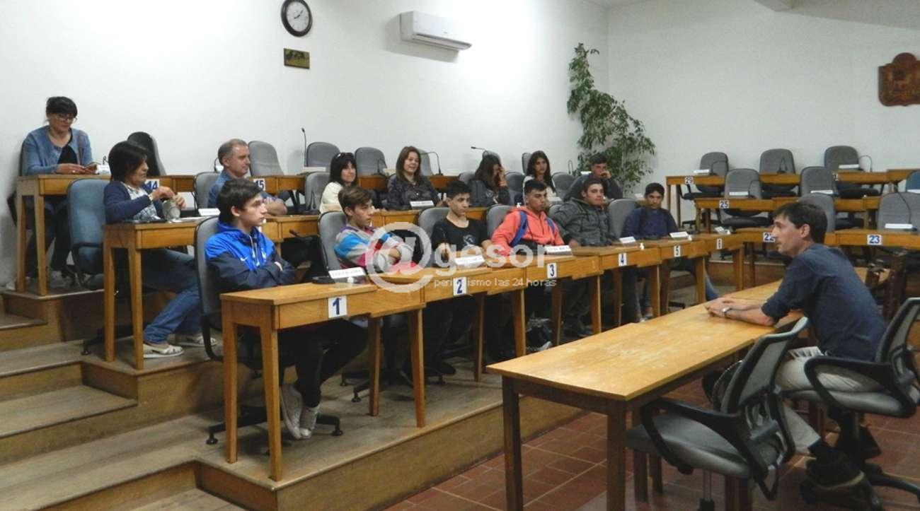 Estaban acompañados por los profesores Nibya Riva, Pilar Aires, Mariana Lacoste, Pamela Curti y Leonardo Armand Pilón, interesándose por el funcionamiento de la Junta, como parte del Gobierno Departamental.