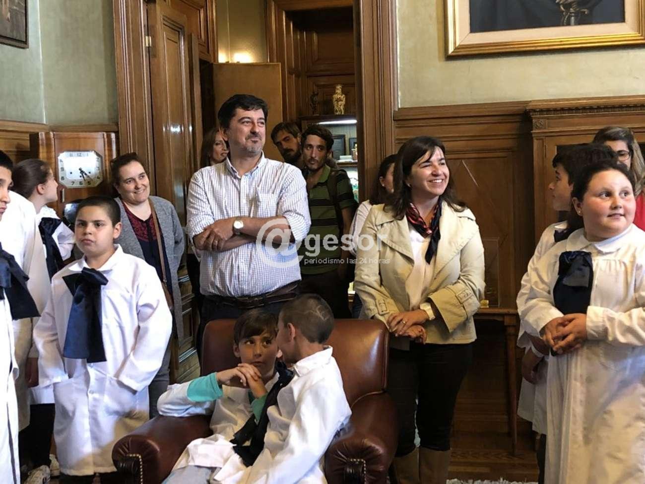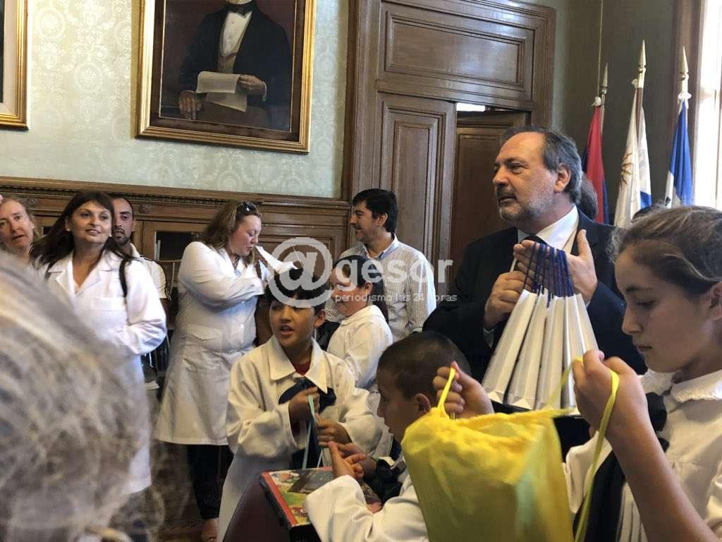Ya finalizando el encuentro y previa entrega de mochilas con útiles de regalo, los niños se entusiasmaron cuando Gandini les comentó que la merienda sería en el Edificio que está frente al Palacio y que hasta allí llegarían por debajo de la calle, por el denominado “Pasaje de la Democracia”.