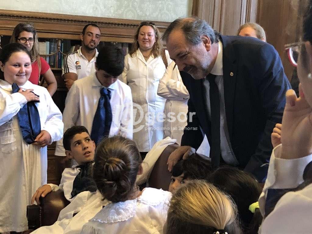 Reunidos con el Presidente Jorge Gandini, promotor del Programa “Visita tu Parlamento”, los niños de cuarto y sexto año tuvieron la oportunidad de sugerir temas a ser tratados en Comisión, entre los que figuraron el cuidado de los animales y la necesidad de buscar soluciones a la gente que está en condición de calle.