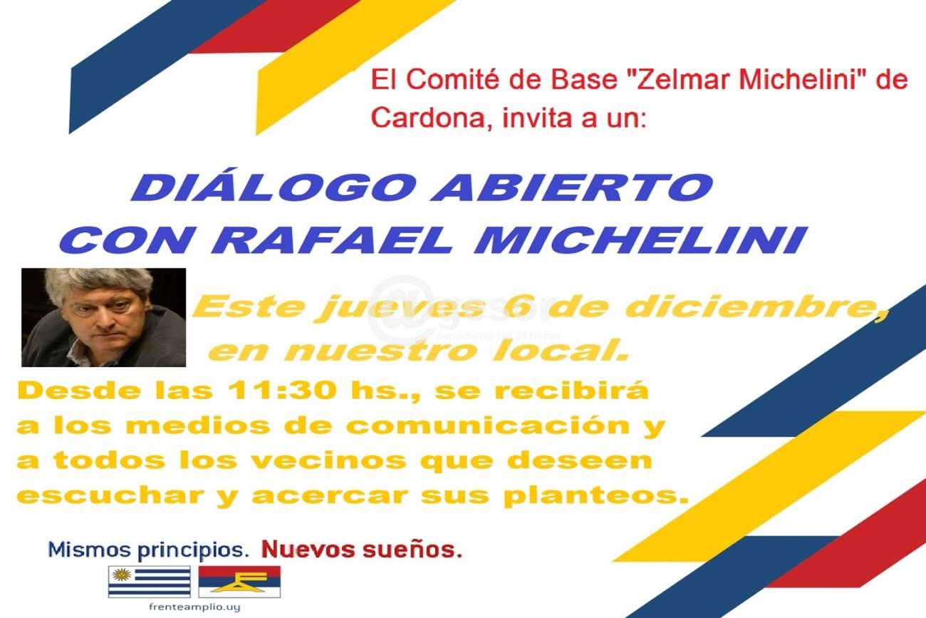 El Comité de Base “Zelmar Michelini” invita a un Diálogo abierto con Rafael Michelini. El mismo se realizará este jueves 6 de diciembre, desde las 11,30hs.