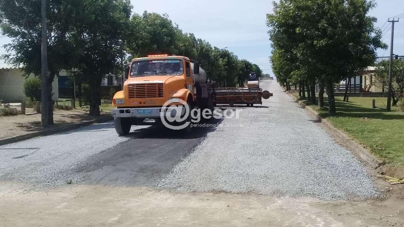 A los tramos en diferentes calles realizados semanas anteriores, se suma ahora la aplicación de asfalto con gravilla en la calle Nº 16 desde ruta 2 hasta calle Nº 11.