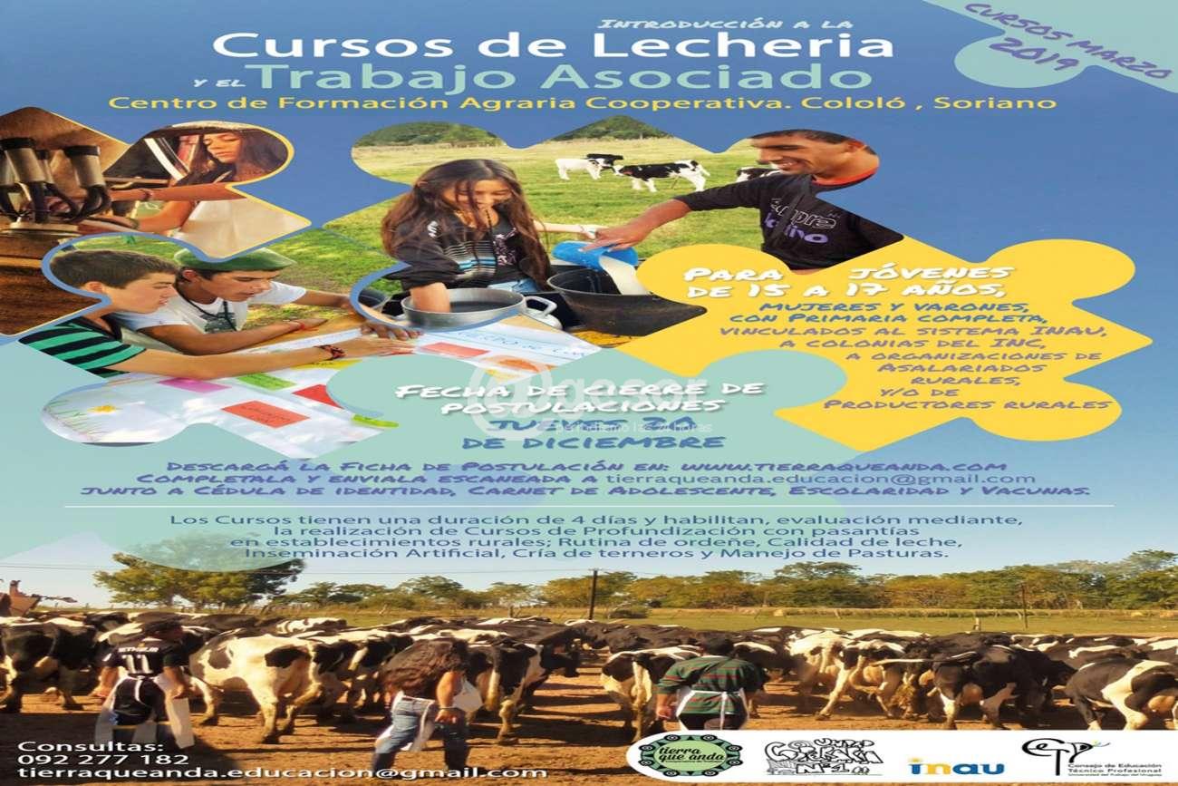 Hasta el 20 de diciembre se estarán recibiendo las postulaciones para los Cursos de Introducción a la Lechería y el Trabajo Asociado, en la Cooperativa Agraria de Cololó. Estos cursos comenzarán en Marzo 2019.