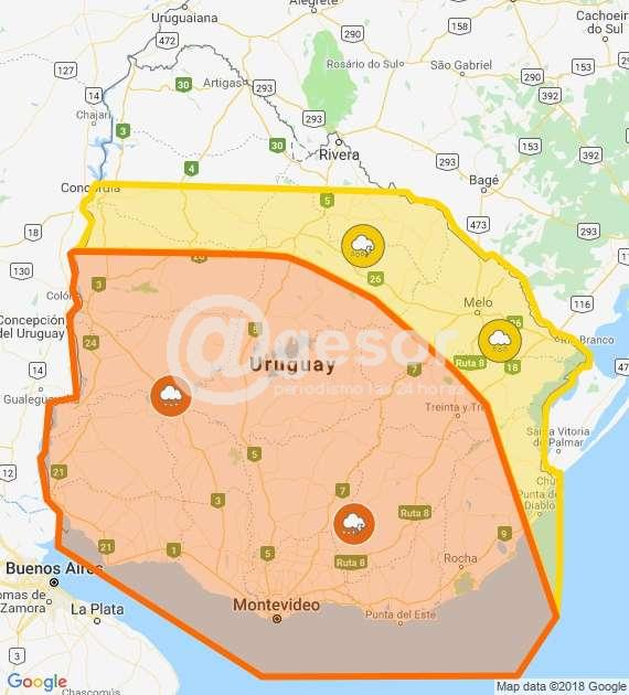 El Instituto Uruguayo de Meteorología (Inumet) actualizó en la tarde de este jueves el llamado de atención amarillo por tormentas fuertes y lluvias intensas y extendió la advertencia amarilla. Ambas advertencias rigen hasta las 21:45 de hoy.