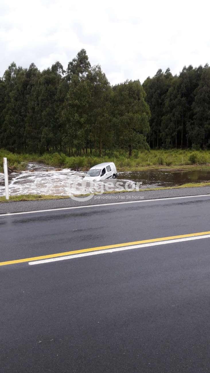 Según testimonios recogidas por @gesor, el conductor perdió el dominio del rodado, debido aparentemente al amplio volumen de agua que pasaba sobre la calzada, que lo desplazó hacia la margen izquierda de la ruta, quedando el vehículo cerca del curso de agua y sobre el alambrado. En el lugar se advierte un pendiente con curva hacia la izquierda.