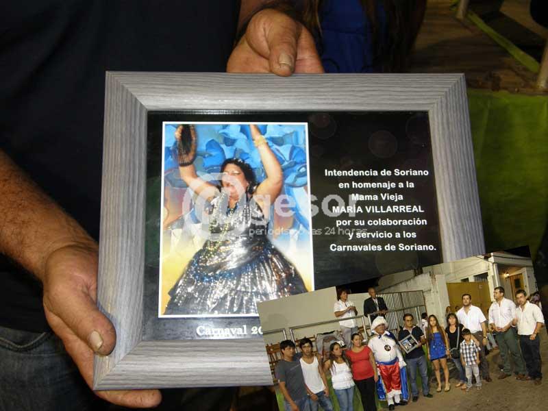 En un cuadro donde se la ve actuando en su comparsa, se puede leer “La Intendencia de Soriano en homenaje a la Mama vieja María Villarreal por su colaboración y servicio a los Carnavaleros de Soriano”.