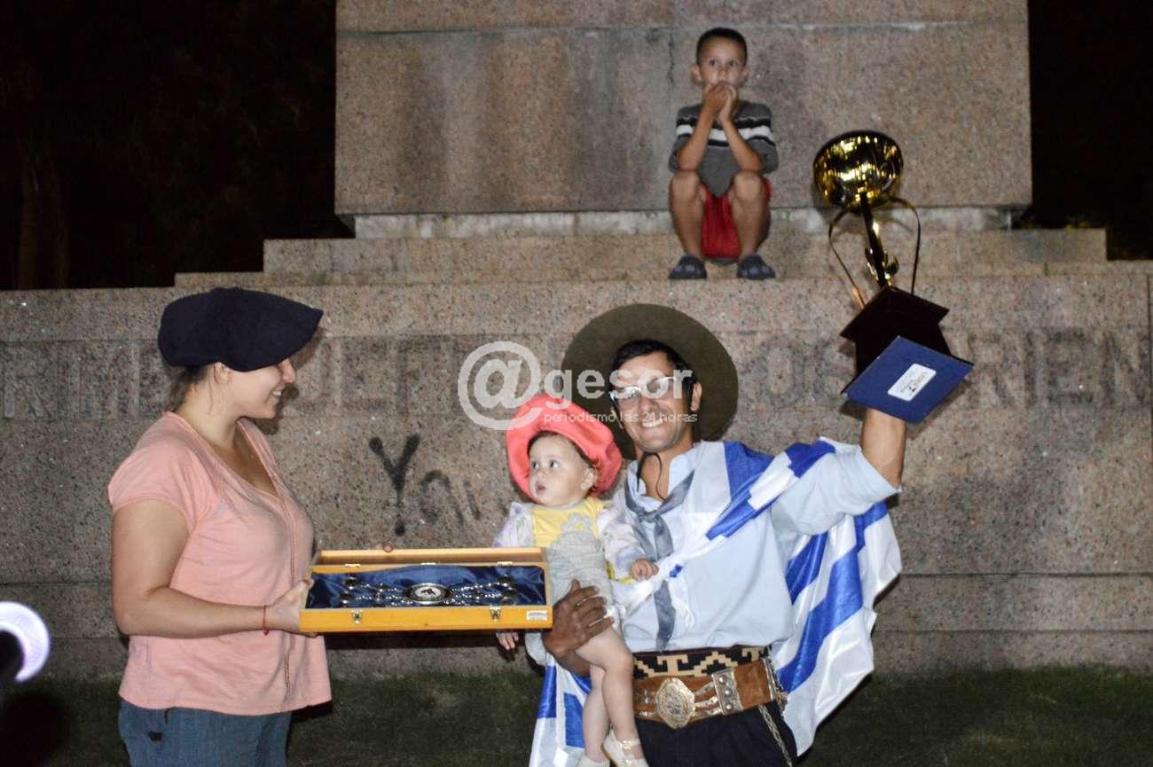 Como informa @gesor por separado, el jinete sorianense por adopción (nacido en Sarandí del Yí) que hace algunos años está radicado en el departamento, fue reconocido al regreso de su notable consagración como Campeón Nacional de Basto Argentino en el Festival de "Jesús María" en Córdoba el más importante del vecino país.
