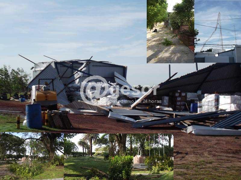 Como adelantáramos anoche, nuevamente la ciudad fue azotada por fuertes vientos, seguido de lluvia, aunque de menor intensidad que en ocasiones anteriores. La peor parte la llevó un galpón ubicado a la entrada de la ciudad por el camino perimetral, donde el viento destrozó gran parte de su estructura. Además la antena de FM Dolores terminó en el suelo, cayendo sobre las casas vecinas. A este panorama se sumó la difícil situación que debió atravesar una familia que el viento le voló parte del techo de su casa.