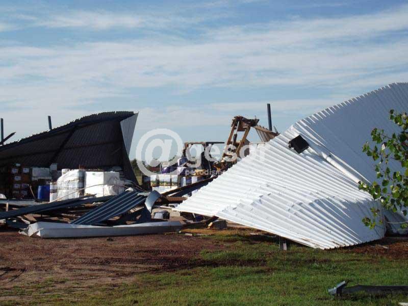 (*) La fotografía corresponde a las roturas en un galpón provocadas por el viento en la ciudad de Dolores en la noche anterior.