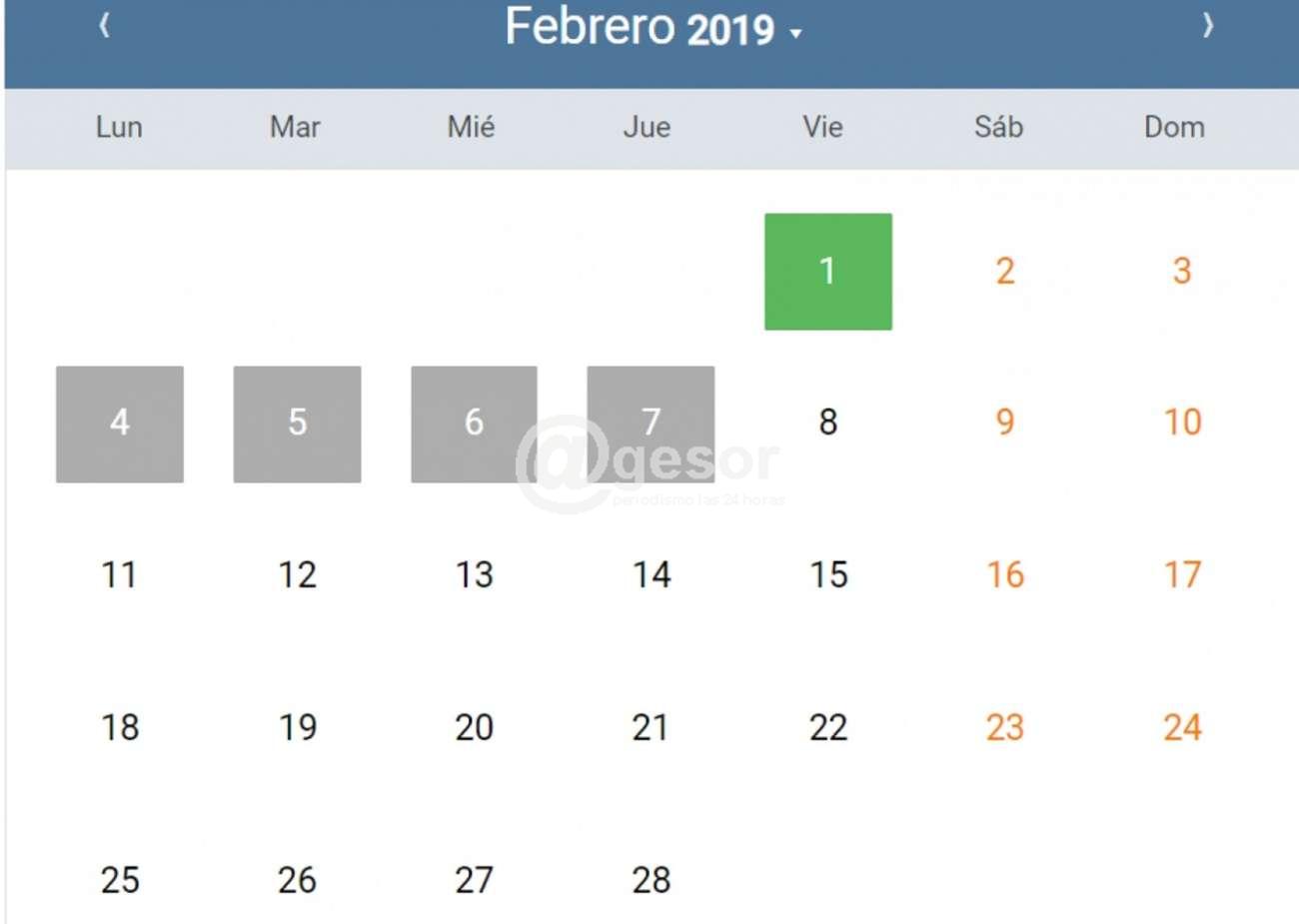 Al ingresar aparecerán los cupos disponibles marcados en verde. Una vez elegida la fecha haciendo clic sobre el día deseado, se podrá elegir el horario.