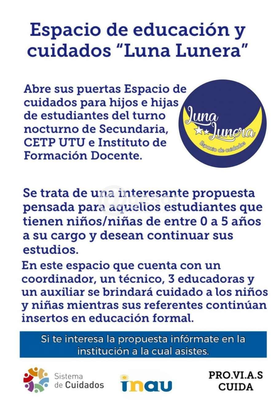 Como se recordará este centro fue inaugurado el año pasado en el marco del Sistema de Cuidados. Está destinado a estudiantes con hijos a cargo que cursen Liceo, UTU o el Instituto de Formación doncente.
