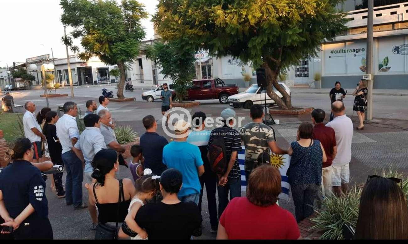 En la plaza Constitución de Dolores se desarrolló acto con presencia de dirigentes sindicales policiales, entre ellos Patricia Rodríguez del SIFPOM (Sindicato de Funcionarios Policiales de Montevideo), con la finalidad de cumplir también con la realización de actos por "Ni un Policía Menos" como ha ocurrido en diferentes puntos del país.
