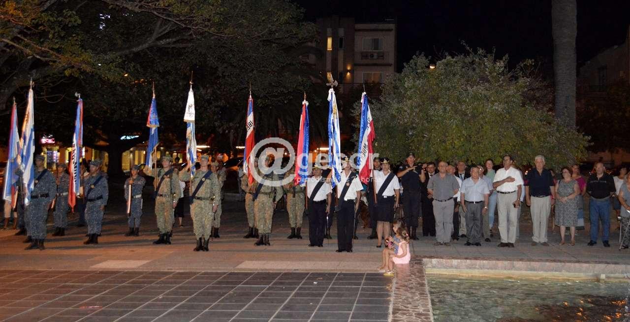 El acto dará inicio con el arribo de la caballería gaucha y el encendido del pebetero con la llama votiva, para dar paso a la ejecución del Himno Nacional uruguayo.