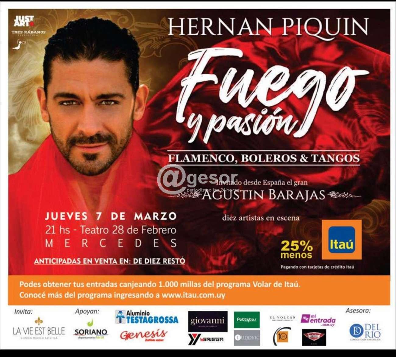 El bailarín argentino Hernán Piquín regresa a los escenarios de los hermosos teatros del Uruguay con "Fuego y Pasión", un espectáculo de ballet y teatro que promete emocionar y cautivar al público.
