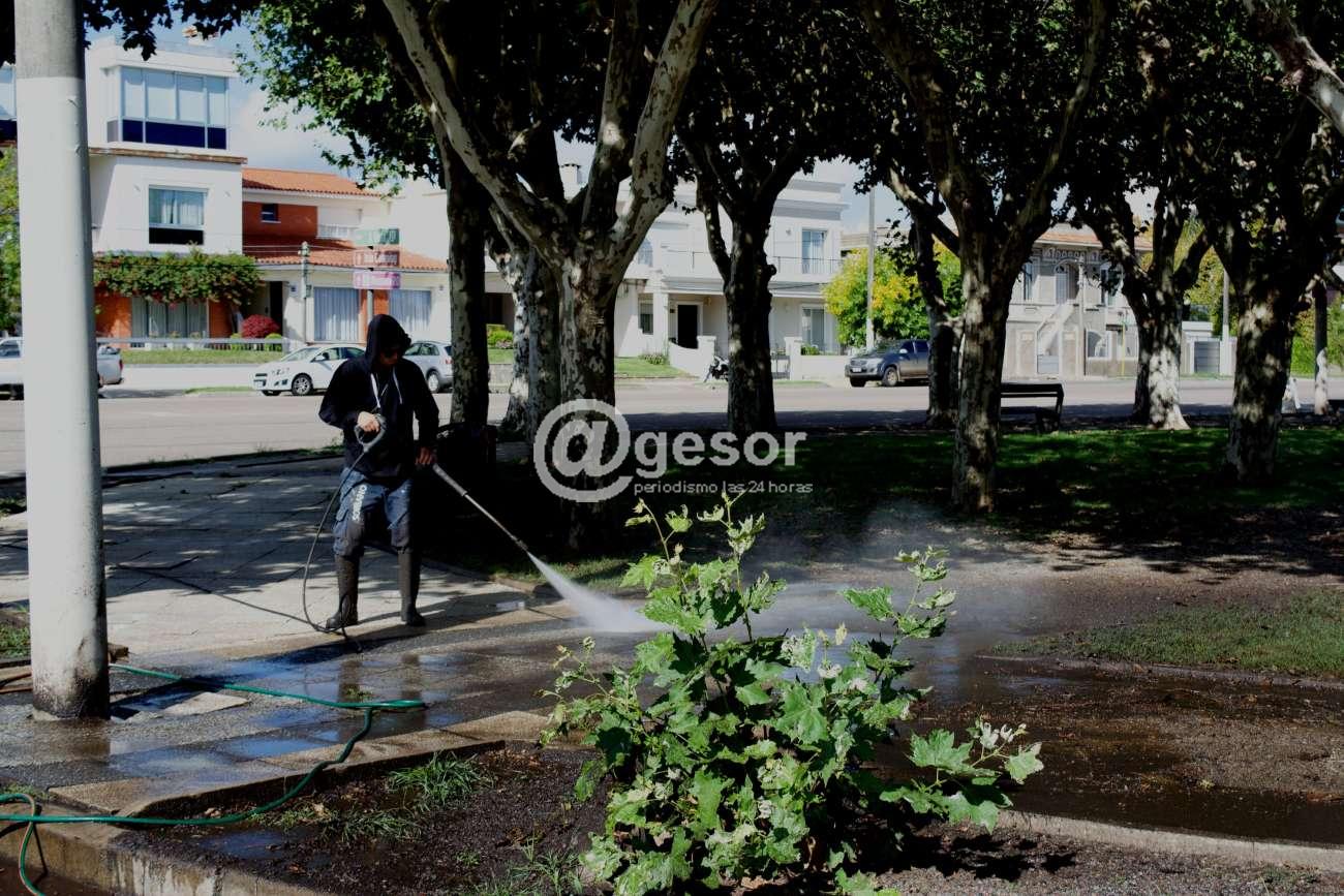 Personal municipal inició este jueves tareas de limpieza en la plazoleta “El Ciervo”, ubicada en la rambla costanera, con la finalidad de higienizar este espacio público que se ensucia debido a la presencia masiva de golondrinas que anidan en sus árboles.