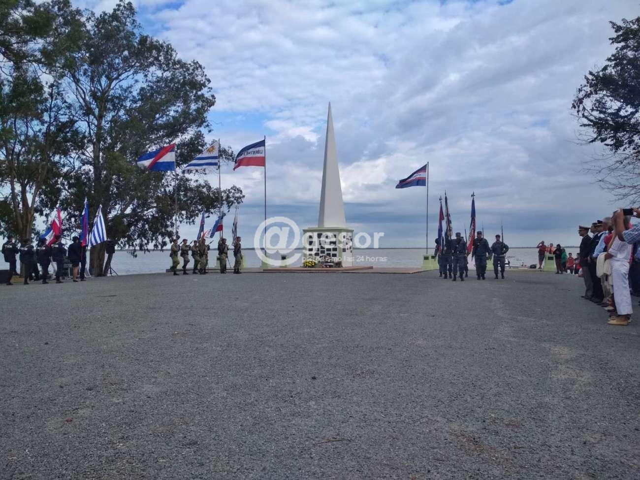La Asociación Patriótica estuvo a cargo de la organización del acto central que comenzó con el Himno Nacional, luego hizo uso de la palabra el Crio. May. Ricardo Coelho en representación de la Jefatura de Policía de Soriano, como Jefe de Zona II. Tras la oratoria, las autoridades presentes, encabezadas por el Intendente de Soriano, Agustín Bascou Gil, a quien acompañaron entre otros el Senador Guillermo Besozzi, los Diputados Enzo Malán y Gonzalo Novales, los Alcaldes Javier Utermark de Dolores, Washington Loitey de José Enrique Rodó, representantes de la Jefatura de Policía de Soriano, del Batallón "Asencio" de Infantería y de Prefectura del Puerto de Mercedes, integrantes de la Comisión de Cultura de Dolores y de la Asociación Patriótica 33 Orientales, colocaron ofrendas florales al pie de la pirámide que recuerda la Cruzada Libertadora de 1825. Para cerrar el acto se ejecutó marcha "Mi Bandera", procediéndose finalmente al retiro de delegaciones.