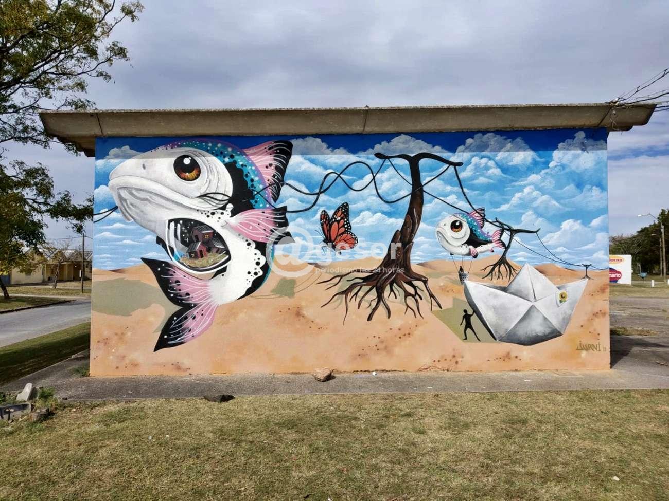 Integrantes del proyecto 33 Grados encabezado por Jesús Catsouris y Desireé Ruggiero con el apoyo de la Intendencia de Soriano realizaron intervenciones en varios muros de edificaciones de pueblo Palmar, hermoseando la localidad. Las fotografías muestran algunos de ellos y el cambio que se genera en el paisaje de este lugar que es muy visitado por quienes buscan descansar del ajetreo diario y gustan de actividades como la pesca y que en diferentes etapas del año llegan hasta allí.