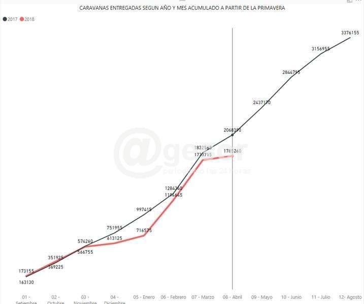 En este sentido, entre setiembre 2018 y abril 2019 se llevan entregadas un total de 1.785.260 caravanas.
