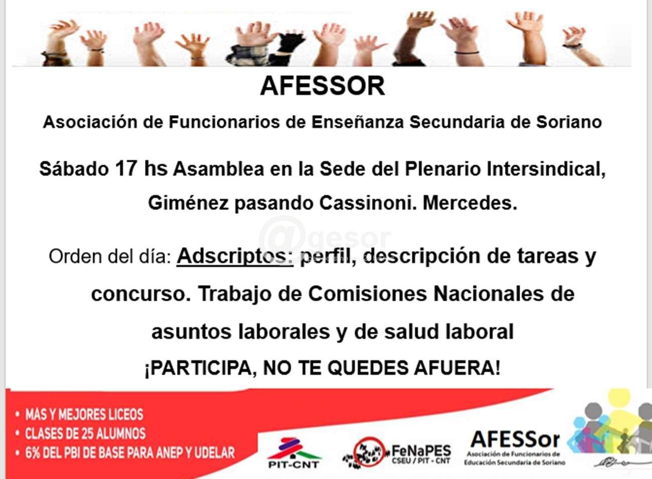 Sábado 17 hs Asamblea en la Sede del Plenario Intersindical, Giménez pasando Cassinoni. Mercedes.