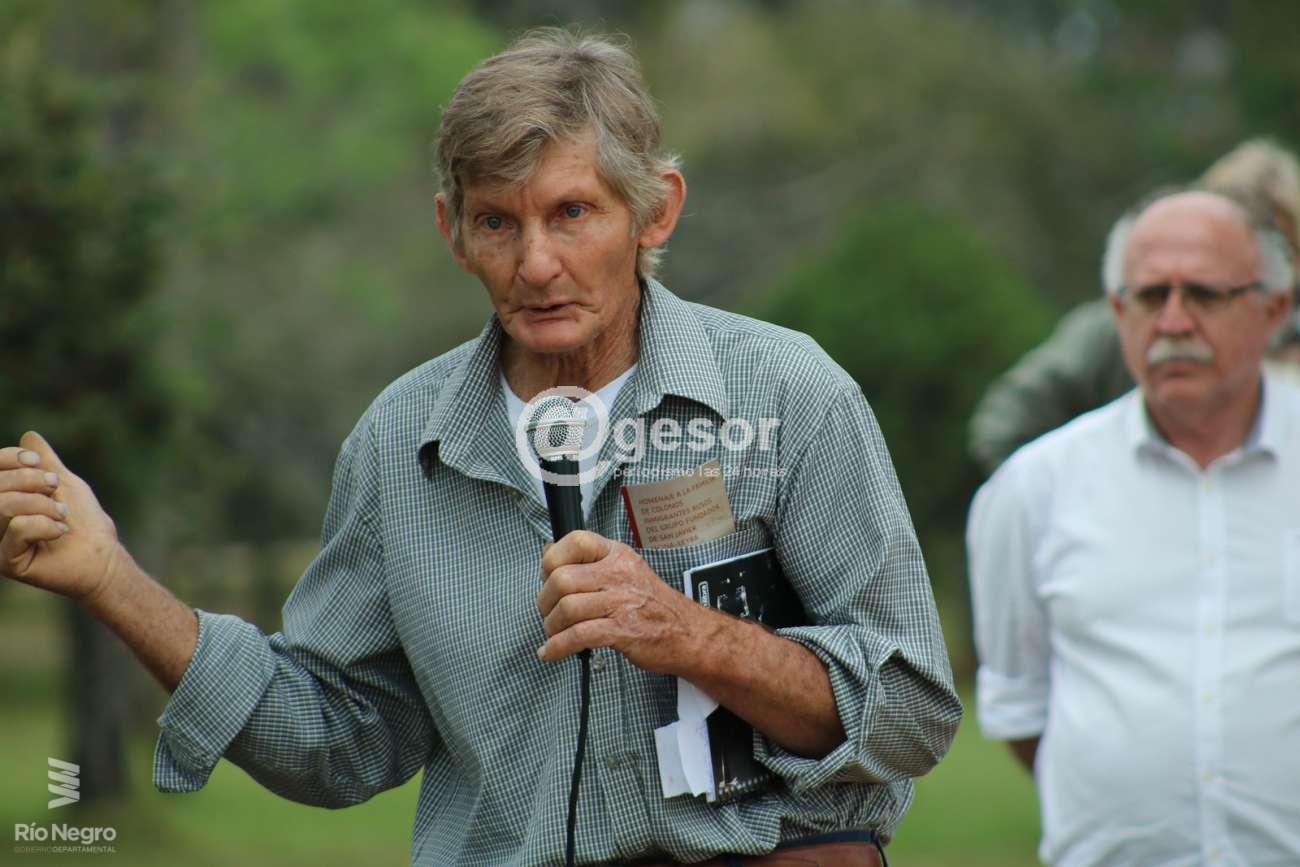 El Intendente Departamental de Río Negro, Oscar Terzaghi, participó y abrió el momento de la oratoria historiando el desarrollo de San Javier desde 1913, fecha del arribo de la emigración proveniente de Rusia, de la comunidad religiosa Nueva Israel, cuyo guía espiritual fue Basilio Lubkov. La formación de la Colonia, el surgimiento de gremios de trabajadores rurales colonos, que reivindicaban el derecho a una fracción de tierras y mejoras en las condiciones laborales de los trabajadores rurales. La muerte de Julia Scorina en 1933, baleada en un acto convocado por estos gremios en San Javier, que fue reprimido por la Policía local, y la toma de la Estancia de Farrapos, el 1 de mayo de 1951, fueron 2 hechos significativos en esta historia de los colonos rusos de San Javier, circulada siempre por su amor por la tierra.