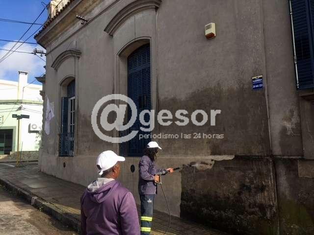 En el marco del plan de mantenimiento permanente de la infraestructura municipal, se realizó recientemente el hidrolavado del frente del edificio de Casapuerta.