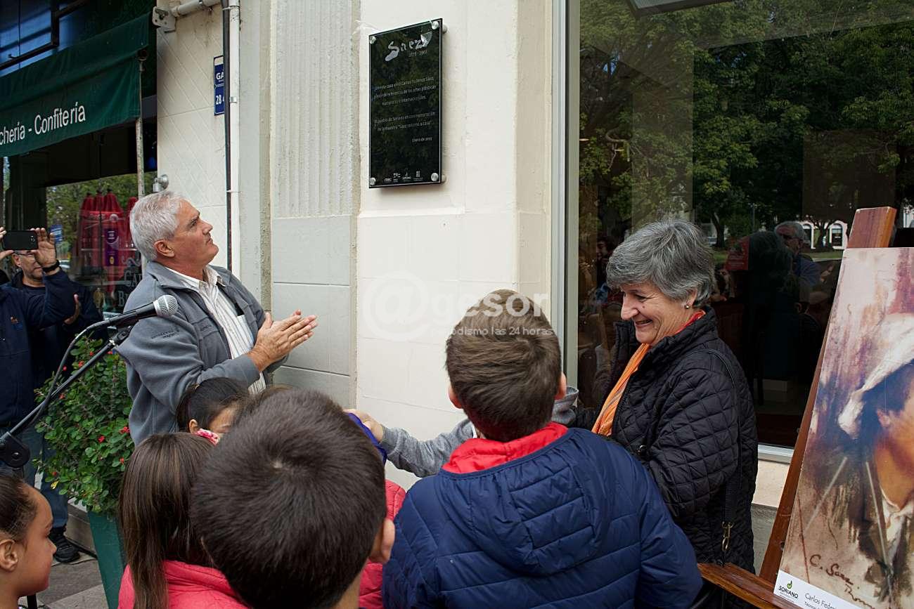 En una sencilla ceremonia qué contó con la presencia del Intendente de Soriano Agustín Bascou, integrantes de las Comisión de Cultura de la Intendencia de Soriano, se descubrió una placa conmemorativa al aporte que entregó a la cultura a lo largo de su carrera, del artistaartista Carlos Federico Sáez . De la instancia cumplida en la mañana de este miércoles, frente al lugar que fuera su casa paterna, ubicada en Giménez y Artigas, en Mercedes, formaron parte numerosos estudiantes y docentes que con su presencia rindieron tributo a uno de los más destacados artistas coterráneo.