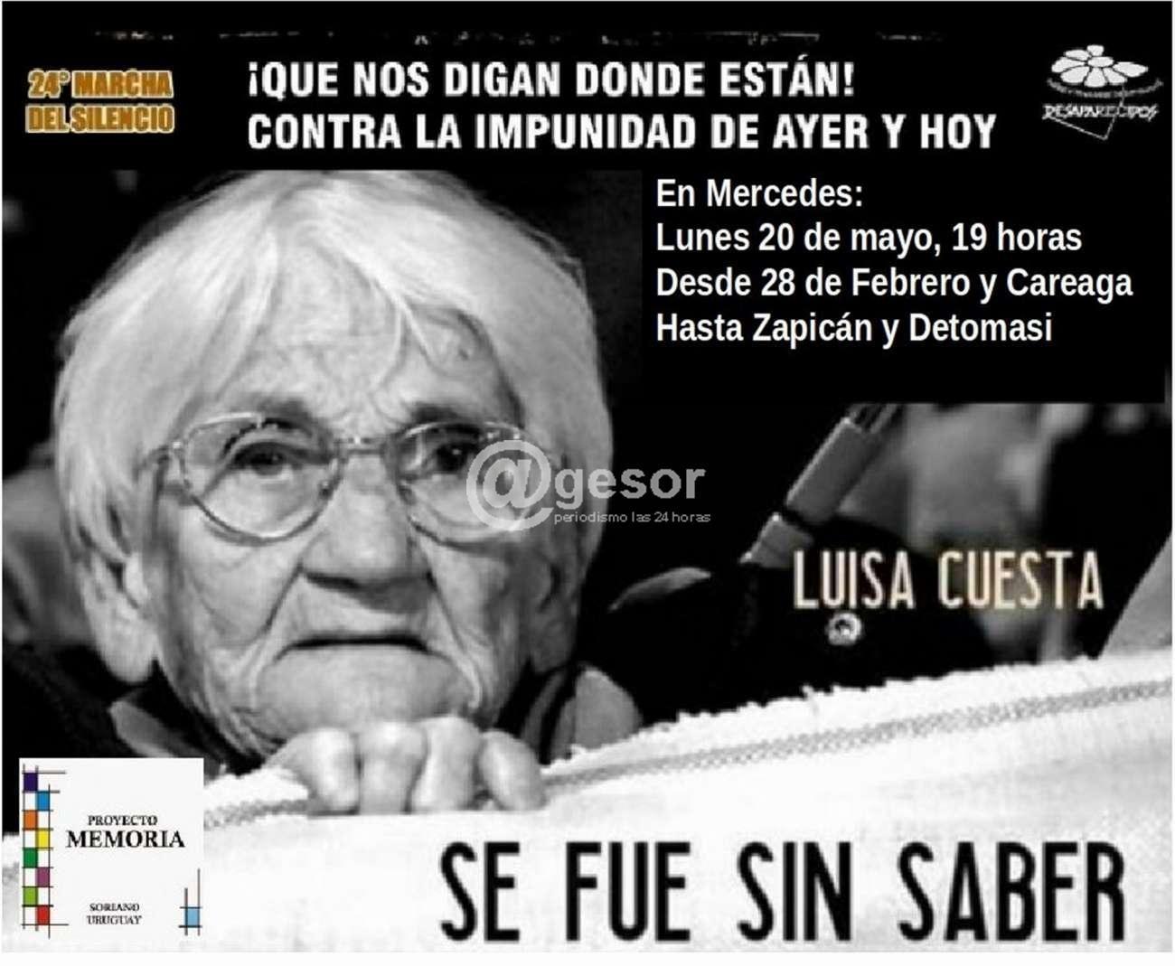Este año la consigna de la marcha es "¡Qué nos digan donde están! Contra la impunidad de ayer y hoy", invitándose a la comunidad en general a marchar en reclamo de verdad y justicia y recordando la figura de la querida y recordada Luisa Cuesta quien falleció sin saber dónde están los restos de su hijo Nebio Melo, detenido desaparecido sorianense.