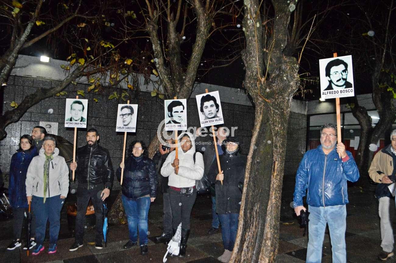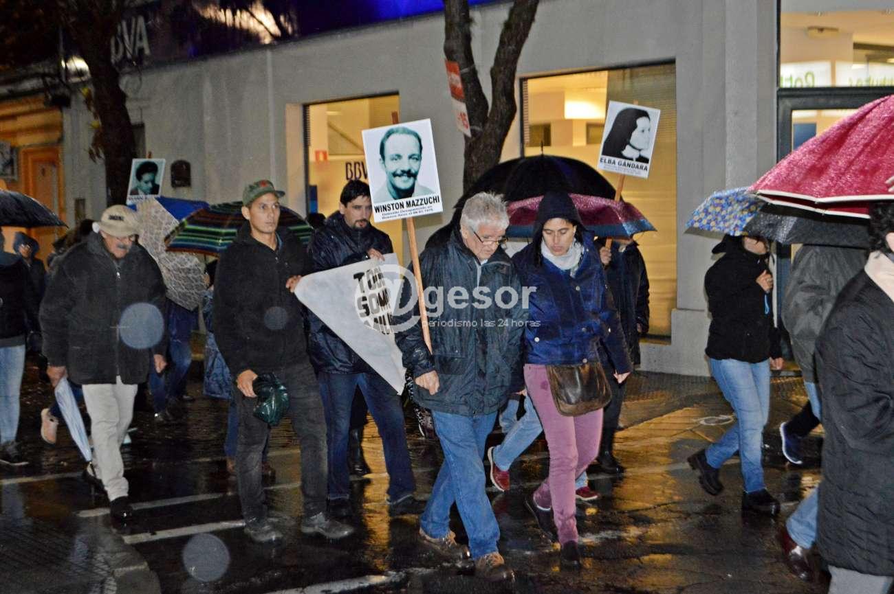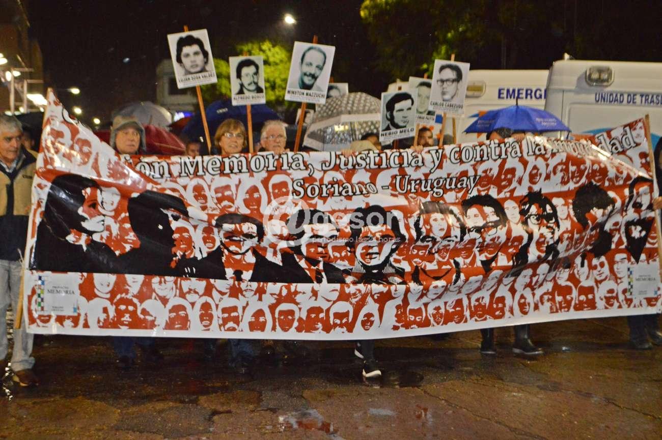 Cuando a las 19.00 horas llovía torrencialmente en Mercedes, con la camioneta de la Brigada de Tránsito de la comuna sorianense brindando las garantías para circular por las calles establecidas, se inició la Marcha del Silencio, organizada por la Comisión Memoria, Justicia y contra la Impunidad de Soriano. La concentración se realizó en la esquina de 28 de Febrero y de Castro y Careaga a pocos metros de la casa donde viviera Alfredo Bosco, uno de los detenidos desaparecidos que tiene Soriano.