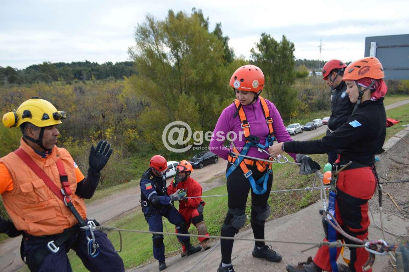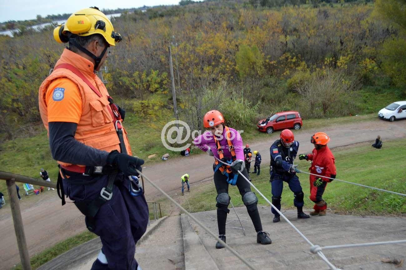 Este sábado se realizaron a lo largo de varias horas, ejercicios por etapas, con 30 voluntarios que están participantes del Primer Ejercicio de Comunicaciones de Emergencia Workshop de Rescatistas Latinoamericanos que está desarrollándose en Mercedes, con la organización de UCRE Uruguay y su filial UCRE Soriano. Las actividades estuvieron vinculadas a formación y capacitación para trabajar en altura, tanto asceso como descenso y fueron guiadas por los instructores internacionales que llegaron de diferentes países para ser parte de este encuentro que tiene su centro de ooperaciones en el parque Mauá.