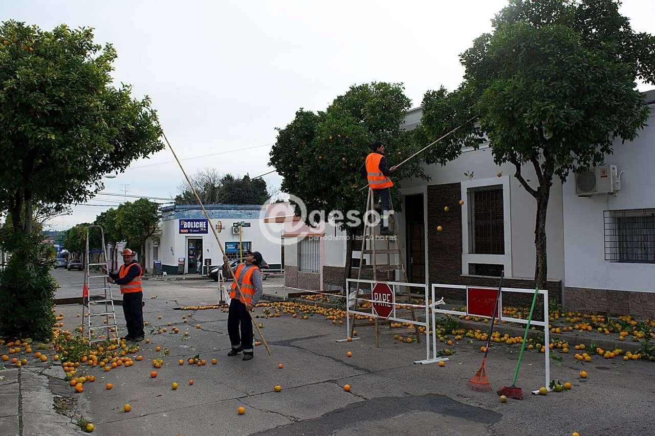 En el comienzo de estas acciones, se destaca el caso especial de los Naranjos de las calles Varela y Gomensoro en Mercedes, allí realiza la cosecha de frutos y tareas de poda de limpieza de ramas bajas y otras que puedan estar afectando el cableado o las fachadas de algunas viviendas.