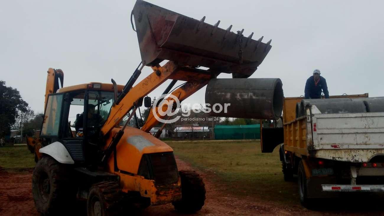 En un predio municipal se acumula granza y caños de hormigón, todo lo que se destinará a las obras que se iniciarán próximamente.
