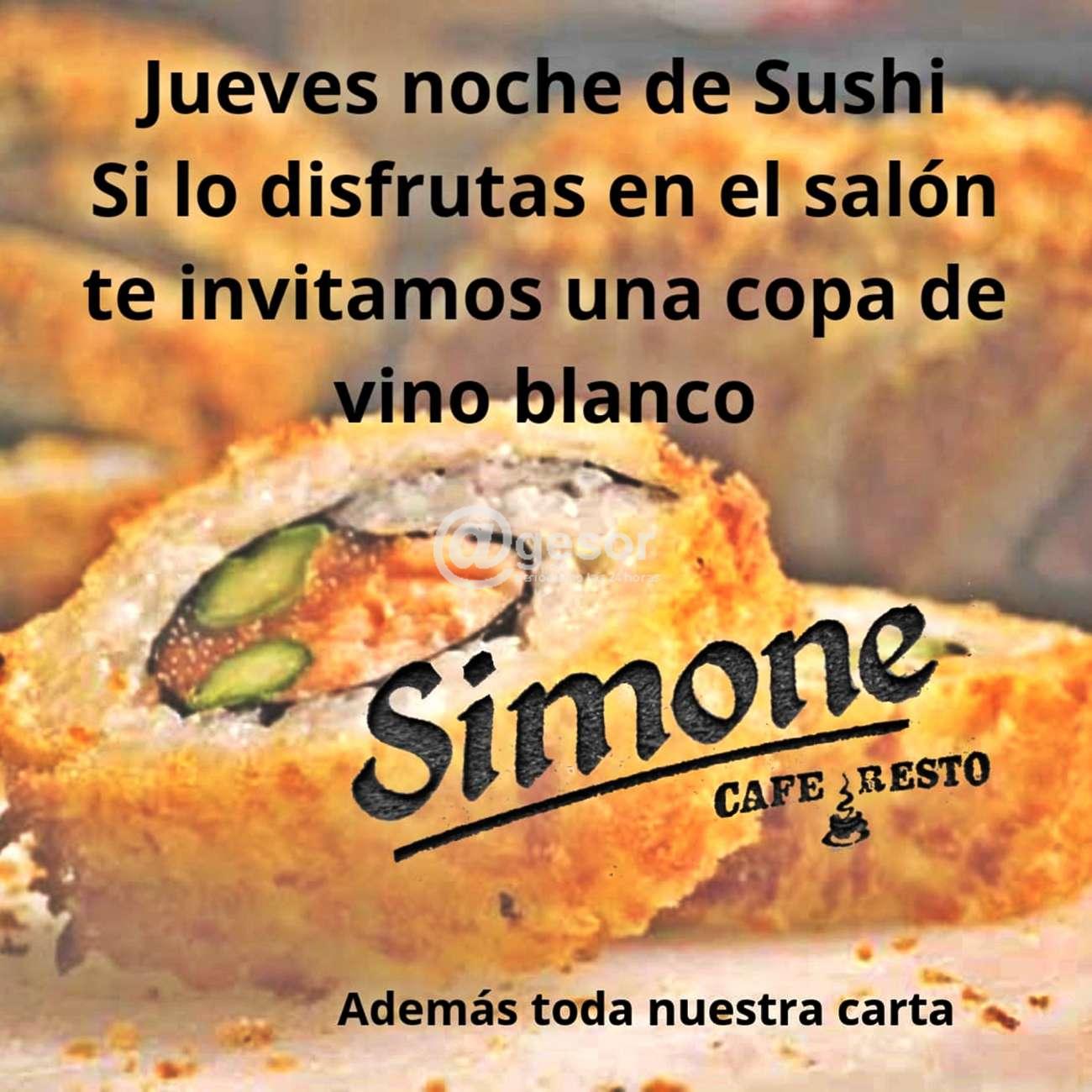 Este jueves, SIMONE Café & Resto te invita a una de sus noches tradicionales de Sushi en el local de avda. Lavalleja y Sánchez en Mercedes, y si lo disfrutás en el salón, te invitamos una copa de vino blanco.