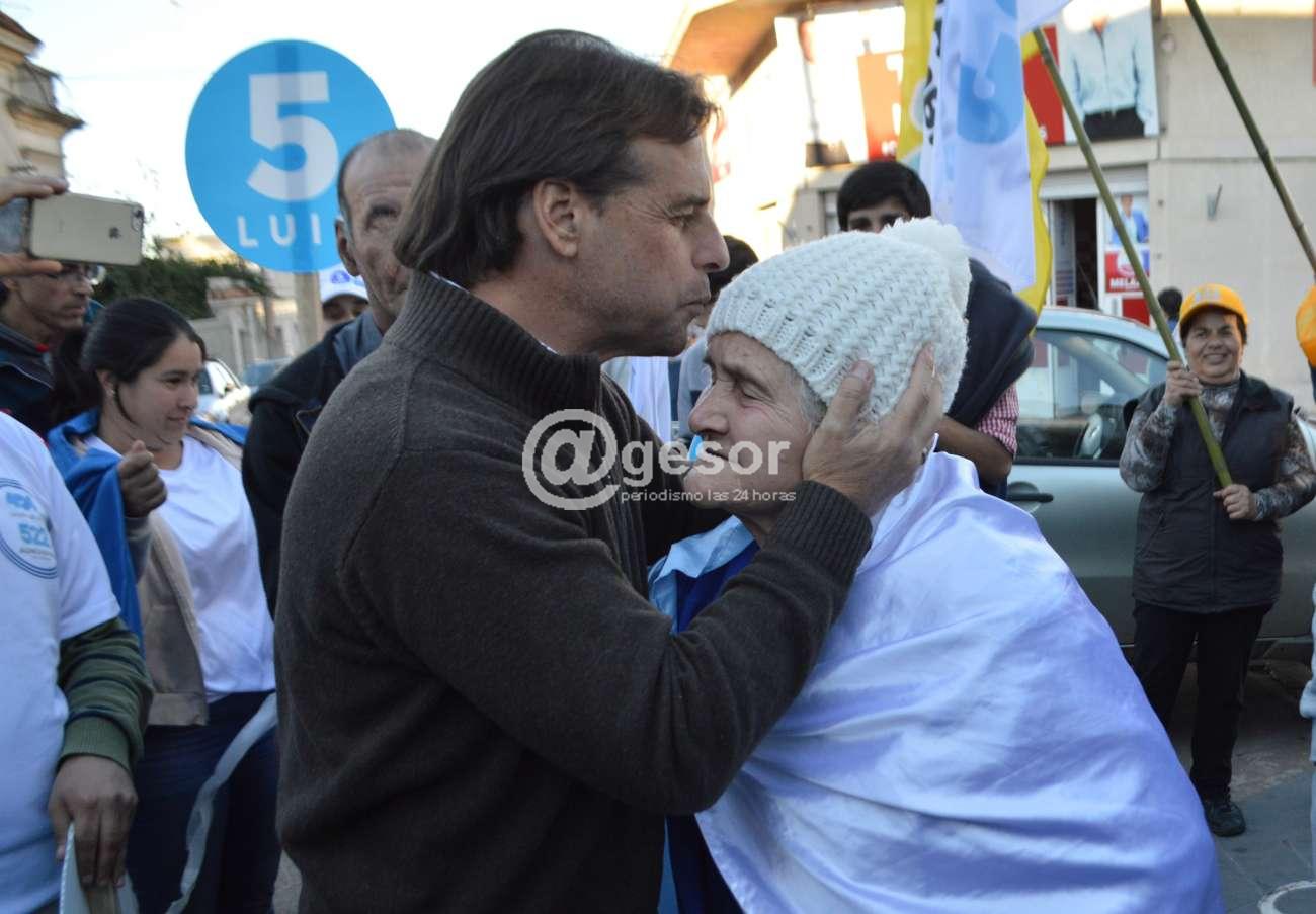 Cuando culminó la caravana tras recorrer las calles de Mercedes, como tantas veces que llegó a la capital sorianense, Luis Lacalle Pou y antes su padre y también los otros líderes nacionalistas, ella lo esperaba allí cerca del escenario para darle un abrazo y un beso, doña Aurora Malacre, se arrimó y cuando se aceró a Luis, éste de inmediato le dijo: "tengo un regalo para vos" y una asistente le arrimó una bolsa azul y desde adentro Luis extrajo una bandera del Partido Nacional autografiada que entregó a doña Aurora y ambos se fundieron en un abrazo.