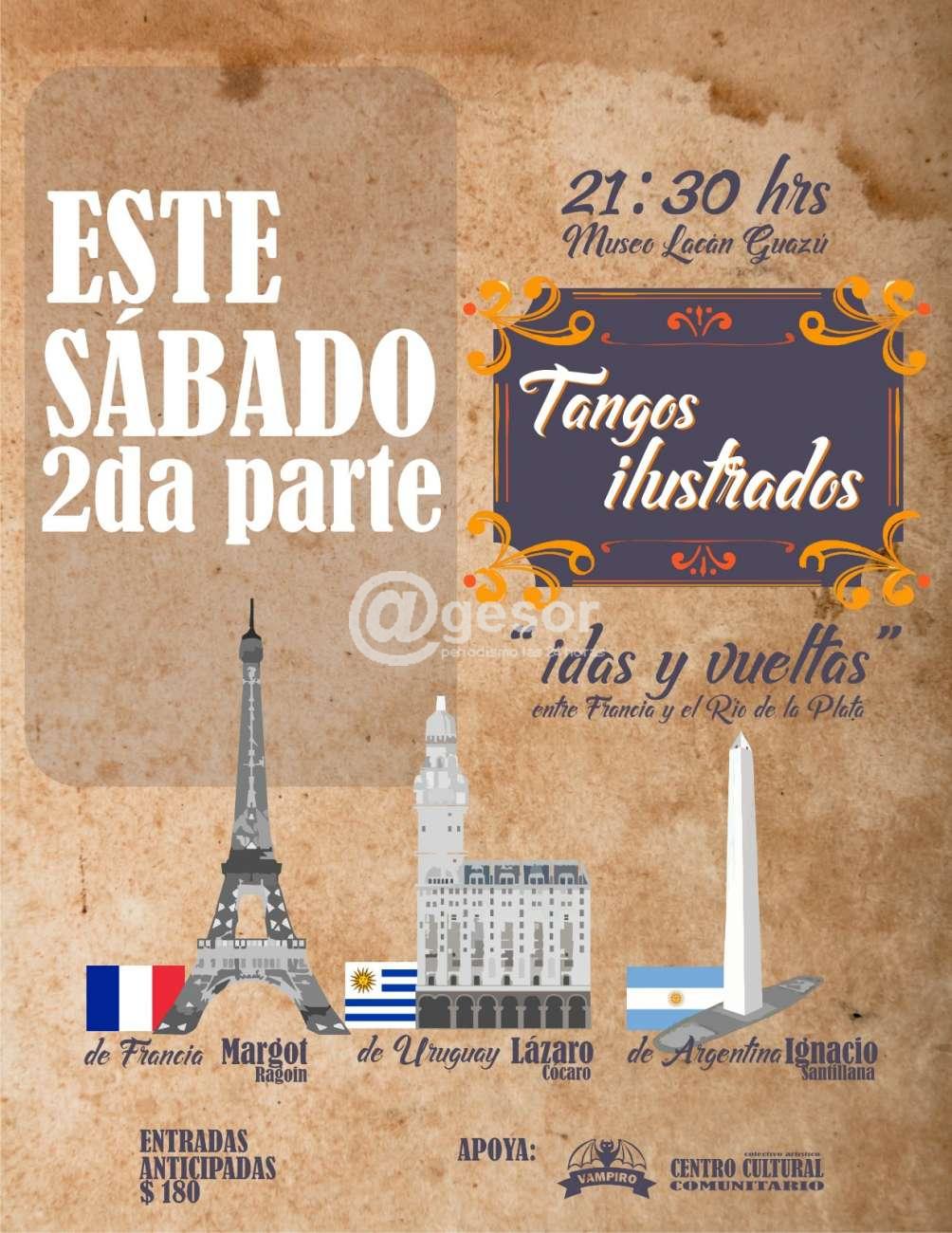 Este sábado en el Museo Lancan Guazú de Dolores se presenta el espectáculo “Tangos ilustrados. Idas y vuelta entre Francia y el Río de la Plata”. Actuarán de Francia Margot Ragoin, de Argentina Ignacio Santillana, y de Uruguay Lázaro Cócaro.